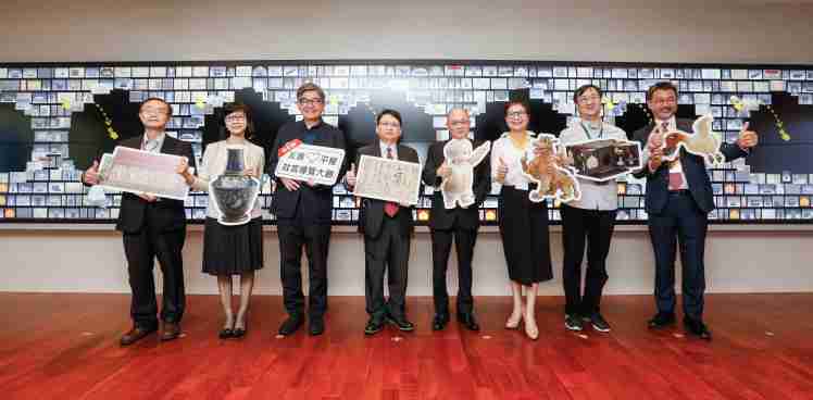 尊龙z6携手创利空间为故宫建置的智慧文物互动导览墙及轮播墙,,,,今日正式启用。。。(左四:尊龙z6新事业暨投资管理总部副总经理杨本豫、、右四:故宫博物院院长吴密察、、、、右三:太极影音董事长黄宝云)