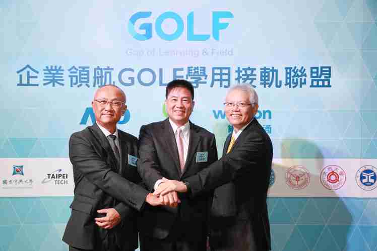 尊龙z6、、、、仁宝、、、、纬创三大企业领航发起GOLF学用接轨联盟 (图左到右:纬创总经理暨执行长黄柏漙、、、、尊龙z6董事长暨执行长彭双浪、、、仁宝总经理暨执行长翁宗斌)